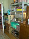 za samymi drzwiami jest niedokończone terra Migoty, od góry jest szkółka kwiatków, jedno terra z cambri i żółwie maluchy, niebieskie pudło oświetlone to tymczasówka henryków a pod spodem karaluchy.