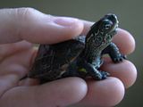 i na końcu żółwiki... pierwszy to ostrogrzbiet którego dostaliśmy przypadkiem. Był w tragicznym stanie - skrajne odwapnienie i obecność większych kolegów w akwarium zaowocowały brakiem praktycznie całego tyłu karapaksu. ciekawa jestem czy to odrośnie... teraz wygląda już o wieeele lepiej niż wcześniej.