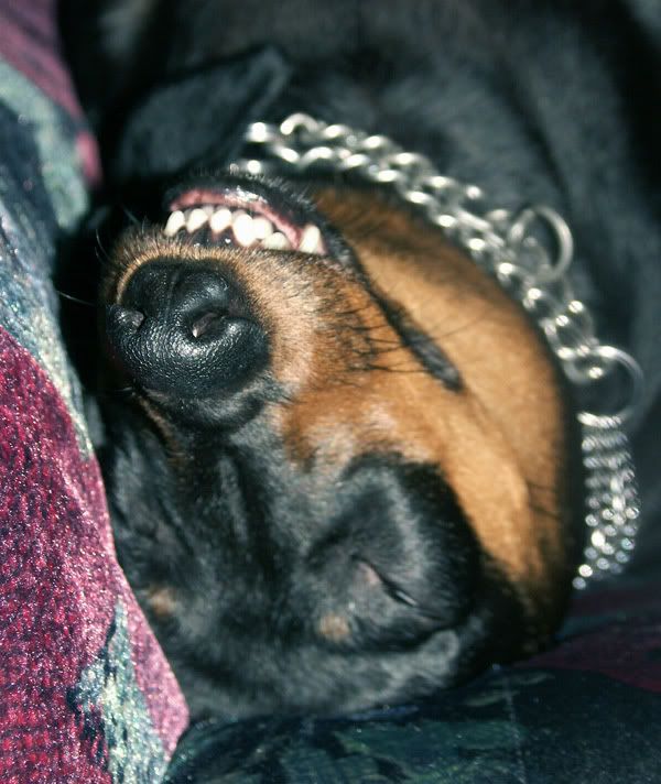 Teraz obaj śpią, Baaj obok mnie na kanapie. Zymft pod stołem. Zymft powarkuje, kiedy Baaj podchodzi, spięcia mieli dwa - oba skończyły się na poziomie strasznia - żadnego nie wspieramy, skoro Zymft jest na tyle odważny, żeby wyskakiwać do Baaja, to musi sam sobie radzić.