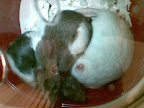 Przed świętami (gdy ja byłam już w domu, a ogonki zostały z koleżanką) nie wiadomo co się stało (po prostu nikogo chyba wtedy w mieszkaniu nie było) - koleżanka zaobserwowała, że Miko non-stop siedzi w domku - wręcz się zabarykadował, mało co z niego wychodzi, Rico zamieszkał na górnej półce, a gdy schodził na dół do miski, czy poidełka Miko zaczynał przeraźliwie piszczeć (generalnie on jest bardziej piskliwy i gadatliwy). Gdy sytuacja taka trwała już blisko tydzień - stwierdziła, że dłużej tak być nie może - no bo jeden się drugiego boi, więc wyeksportowała Rica do innej, mniejszej klatki. I teraz mamy sytuację patową - niby jak są wypuszczane to nie zwracają na siebie uwagi, ale gdy próbuje się je włożyć do jednej klatki (po jej uprzednim wyszorowaniu i wymianie ściółki) no to rozgrywają się sceny dantejskie. Przecież żaden z nich nie był jedynakiem w swojej szczurzej rodzinie zanim do nas trafił - każdy miał po kilku braci, sióstr pewnie też... Pomóżcie nam, bo już nie mamy pomysłu.