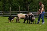 Dumna jestem i uskrzydlona jak rzadko kiedy Wczoraj pojechałam do Pastuszkowa na seminarium pasterskie dla wszystkich ras. Seminarium prowadził Tomek Pecold - prekursor sportowego pasienia w Polsce, hodowca borderów. Jako, że Negra ani ja nigdy wcześniej nie miałyśmy z owcami czy pasieniem do czynienia, nie za bardzo wiedziałam co mam robić. Negra natomiast wpadła w żywioł. Nie trzeba jej było zachęcać do podejścia do zwierząt, od razu zaczęła je okrążać, natychmiast leciała za każdą oderwana od stada a na koniec zaprowadziła je do kąta i pilnowała. Ja w zasadzie mogłam jej tylko zaufać, bo była sprytniejsza ode mnie. Po pierwszych minutach Tomek podniósł kciuk i uśmiechnięty powiedział "Słuchajcie, to jest prawdziwy pies pasterski". Generalnie był bardzo pozytywnie zaskoczony, powiedział, że to co zrobiła Negra (nie wiem, o którą czynność chodziło dokładnie) bywa za trudne nawet dla bordera, a ona to robi instynktownie. Powiedział również, że gdyby to był test Próba Instynktu Pasterskiego (których jest sędzią) to Negra dostałaby piątkę, a za rok byłby z niej świetny zawodnik na zawodach farmerskich. No nic tylko kupić owce