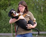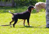 Druga rzecz - dziś Negra zdała egzamin PT1 z oceną dobrą. Zabrakło nam pół punktu do bardzo dobrej. Zawiodła szczekliwość i niecierpliwość. Cieszy mnie natomiast, że na siedem psów, które podeszły do egzaminu, a wśród nich był ONek, golden, weimarczyk, Hoek, Negra była na drugim miejscu. Udowodniłam też instruktorowi, który powiedział kiedyś, że entle nie równają, że jednak potrafią, zdobywając w równaniu bez smyczy maksymalną ilość punktów. Wróciłyśmy ze sreberkiem na szyi