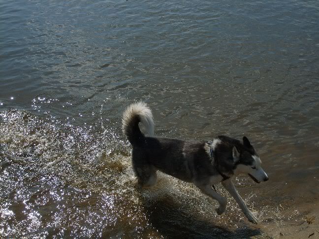 Właśnie byłem z małym na wieczornym spacerze. Zauważyłem że okoliczne, szwendające się luzem burki podbiegają do Baaja na odległość 2m po czym jak widzą do czego podbiegły to robią w tył zwrot i jeszcze szybciej znikają. Dzisiaj wystraszył coś przypominającego ozika a nawet na niego nie skakał, tylko się spojrzał a tamten uciekł z przerażeniem w oczach. Może te psy wyczuwają że Baaj jest teraz wiecznie głodny, próbuje wciągnąć dosłownie wszystko i w każdych ilościach. Dzisiaj była kolejna batalia o nie wchodzenie na blat w kuchni gdzie stoi psie żarcie, no i już biega po szczycie klatki i oparciu kanapy nie wspominając już o kablu od netu który musiałem wcisnąć głębiej pod dywan i pcv i przybić tackerem do podłogi aby wredny szkodnik go nie wyrywał. Heh, zaczynamy wreszcie odczuwać że mamy wilczaka w domu