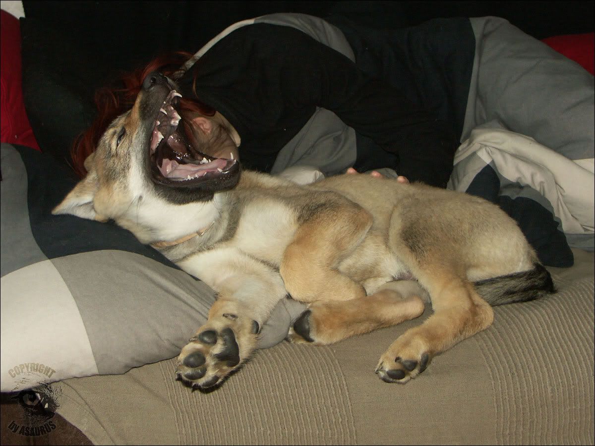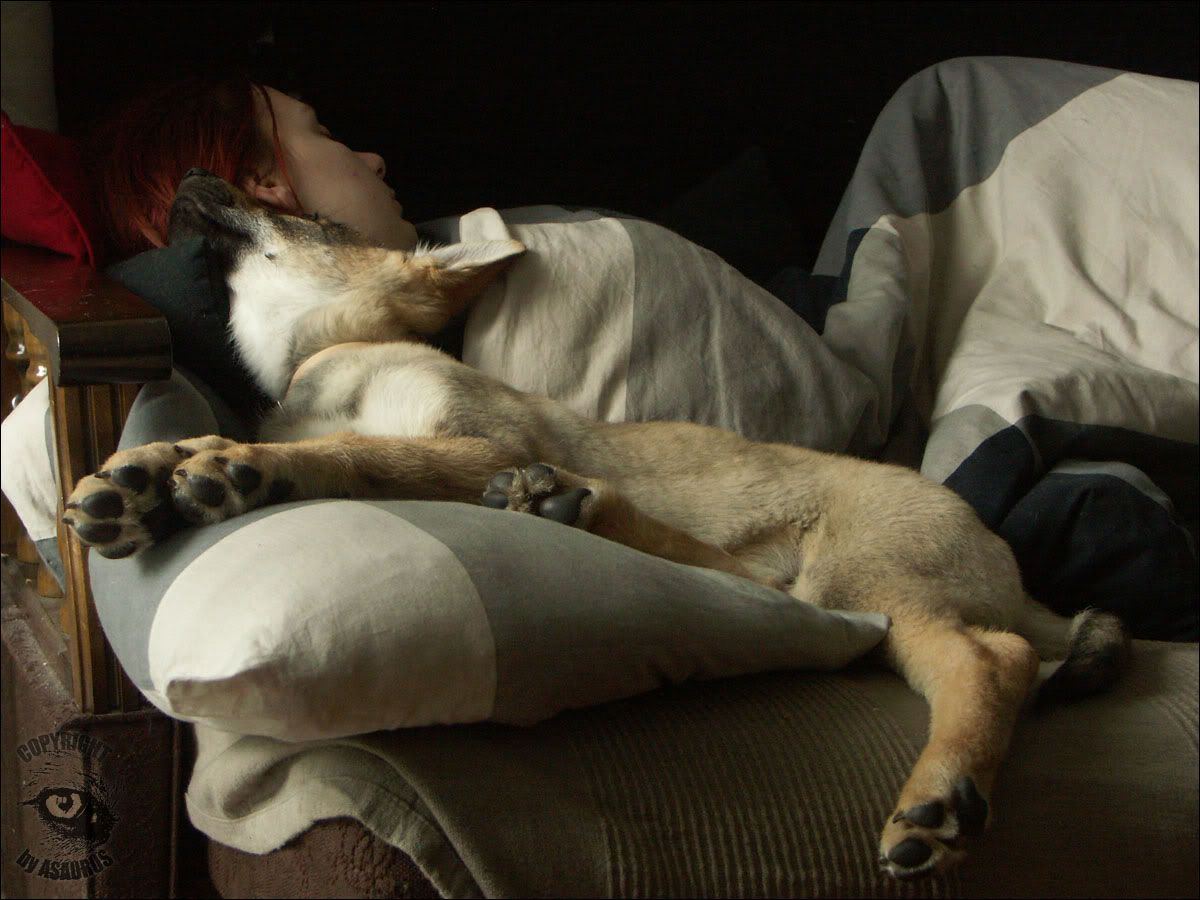 Asaurus, a kto mówi, że nie śpi? Ja tylko twierdziłam, że schodzi Poza tym to akurat moja wina. Misiek wrzucił Baaja na łóżko, żeby mnie obudził, a ja psa dogniotłam do poduszki i stwierdziłam, że nie wstajemy