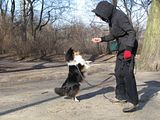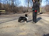 A tu z wczorajszego spaceru. Moje próby łączenia spaceru z zabawą i zabawą nauką. Mamy drobne postępy, typu brak dzikiego biegu do psa, ale wciąż dużo pracy przed nami.