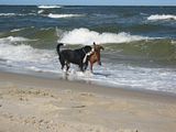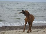 Za to Fuńcia nabyła nowe umiejętności: może być w ekipie słonecznego patrolu - pięknie wyciąga ludzi z wody (na wesele kuzynki poszłam cała w siniakach, bo bynajmniej nie robi tego delikatnie) i z siadu przeskakuje półtorametrowy płot...