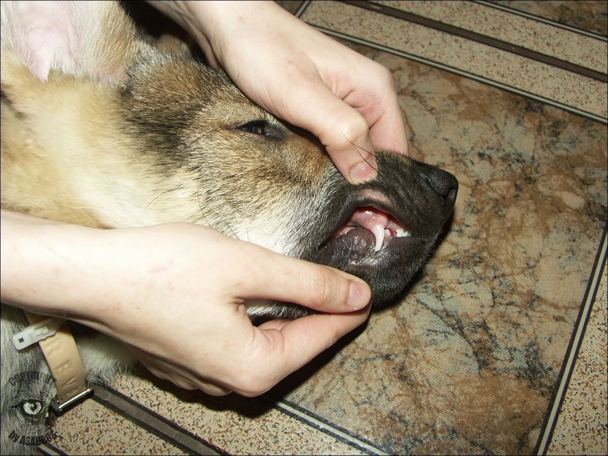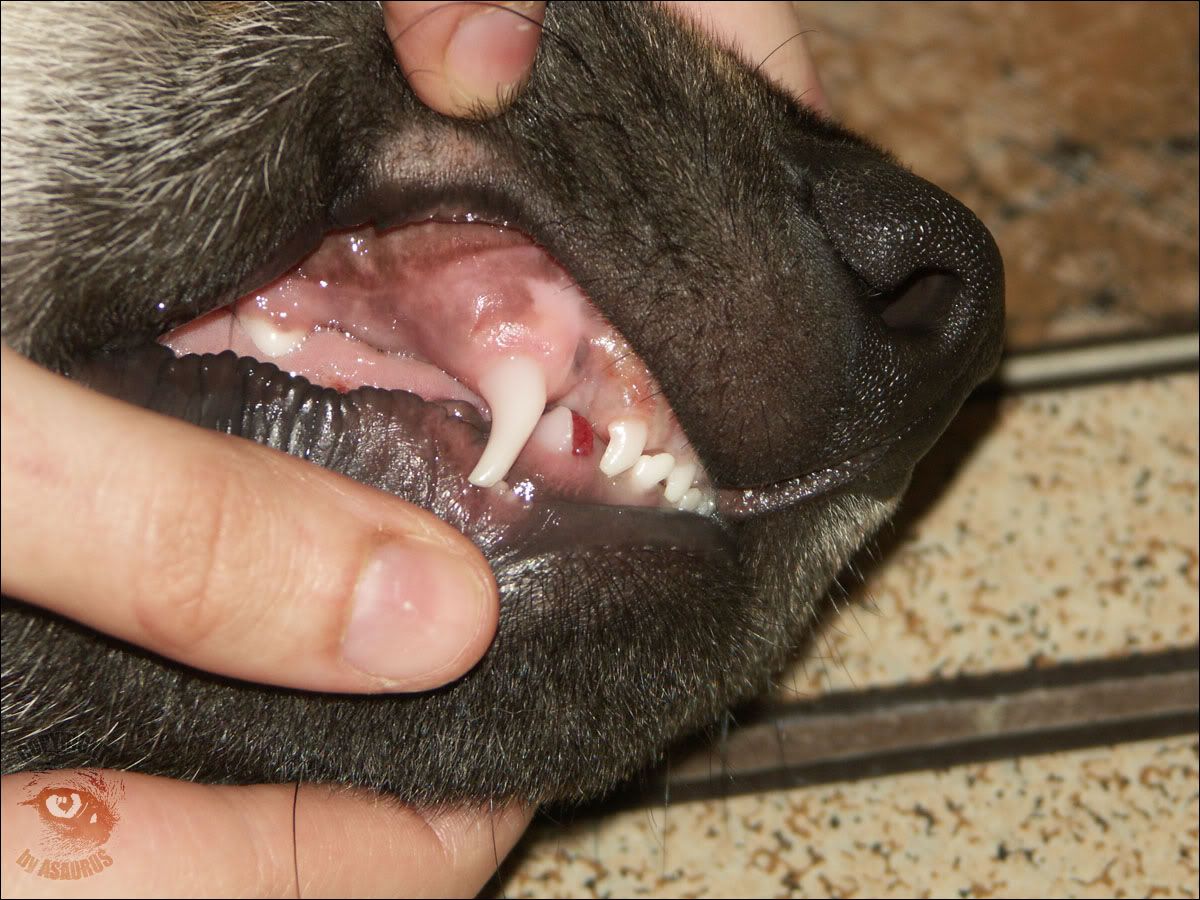 Co takiego Baaj próbował zjeść, że aż zębola połamał? Moja paskuda dopóki mlecznego kła nie złamała, uwielbiała nosić w pysku kamienie. Po stracie zęba - przestała