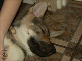 Jest cały czas napięty, no chyba, że śpi. O 17 idziemy do weta na antybiotyk... ech...