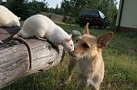 Eutka się baaardzo interesuje szczurami (moje suki mniej)