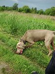 A ja znów miałam do wyprowadzania Huxleya i Bullego, są to wyżeł weimarski i bulldog angielski, i chodź oba te psiaki uwielbiam, utwierdziły mnie w przekonaniu że ani bulldog, ani wyżeł nie jest psem dla mnie Z Bullym to nigdzie daleko nie zajdziesz, długi spacer nie ma mowy, a jak jest gorąco to stoi w miejscu, zimno też nie idzie W ogóle ostatnio naczytałam się jak to bulldogi potrafią tracić przytomność na dłuższym spacerze. A ja jednak lubię sobie pospacerować iść na 2/3/4/5 czy nawet 6 godzin... Więc chodź z charakteru jest przegenialny, przekochany, i jak prycha to pluje, gramoli się na kolana, i potrafi przeskoczyć fotel Huxley z drugiej strony, jest całkiem przeciwieństwem, chwili nie usiedzi, robi harmider, ciągnie jak lokomotywa, więc zawsze dwa pierwsze dni wyprowadzania to katorga, żeby go przestawić na nieciągnięcie Ogólnie też jest bardzo kochany... ale jednak nie mój charakter psa. Czasem wydaje mi się być mądrym psiakiem, a czasem totalnie bez mózgowym, i nie mogę się właśnie zdecydować czy on jest jednak głupiutki czy tylko momentami udaje, podejrzewam że jest to też kwestia zajmowania się nim, tzn. gdyby go częściej wymęczać, więcej ruchu, to pewnie momentami łatwiej było by go na czymś skupić A to jest wyżeł, po pracujących rodzicach ścisłym centrum miasta...