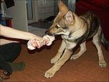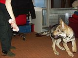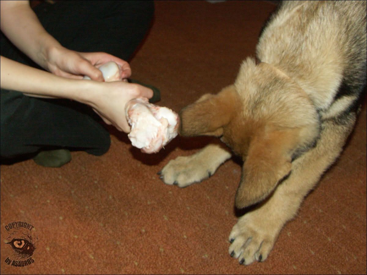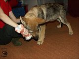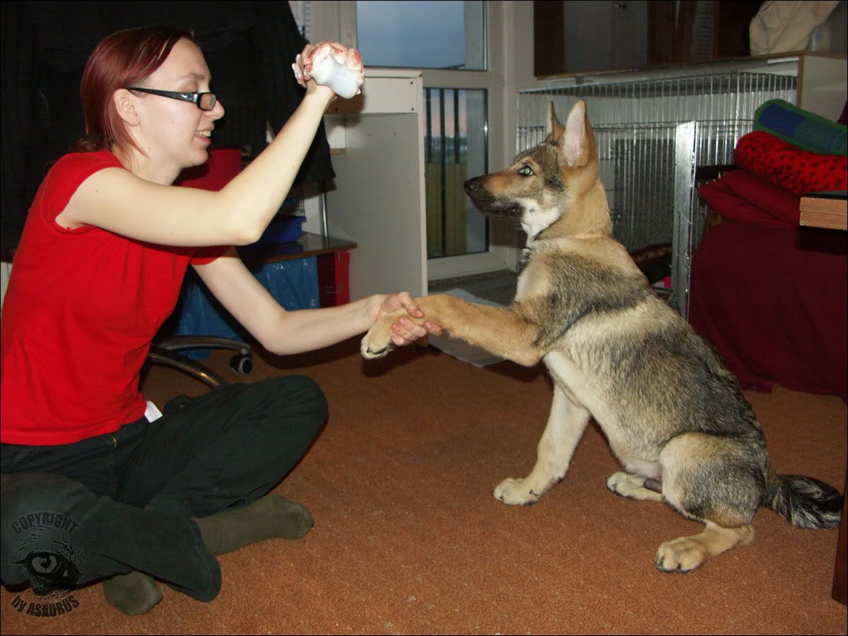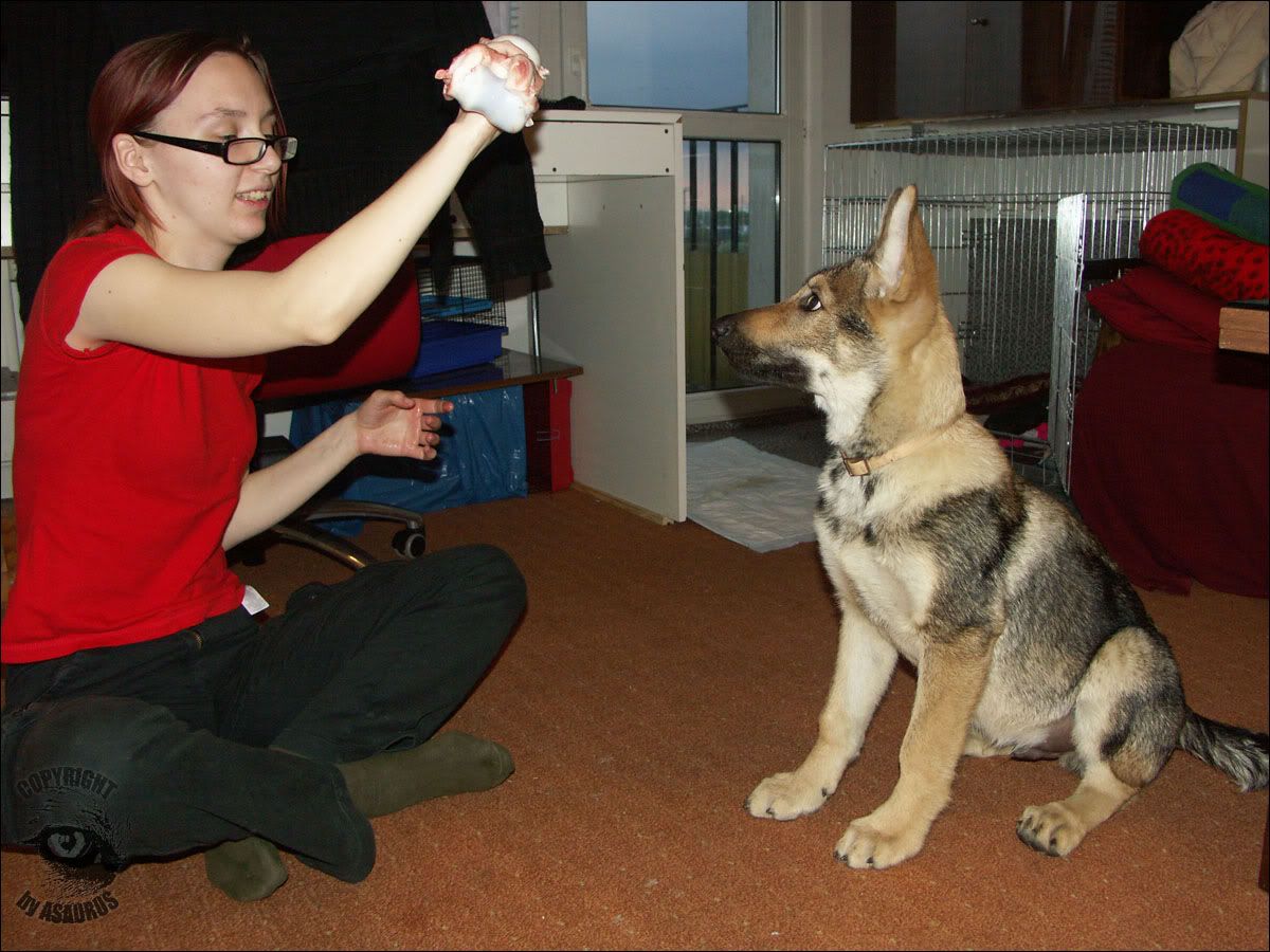 Olimpia, ależ żadne z nas nie uważa tego za zabawne. Chociaż fakt trudno nie buchnąć śmiechem, jak pies ci nawrzuca, a potem się wycofuje. Sesji z kostką dziś było kilkanaście - do momentu, aż pies dał się normalnie dotknąć i odebrać kość. Wbrew pozorom znamy podstawy