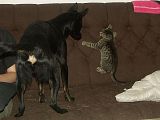 nezu, i taki jest. Wcześniej po prostu lubił koty i był ciekawy - teraz to już obsesja, a Selawi to zoZła... Podejrzewam, że wiek robi swoje w połączeniu ze zbyt wczesnym oddzieleniem od matki. Niestety nie wszystko możemy ignorować. Ona nie może gryźć na oślep z całej pary, nie może gryźć kabli i nie może drapać, kiedy chce, żeby się nią zająć. Sporo noszę ją na ramieniu, bawimy się dużo, pokazuje jej różne rzeczy. Biedna, płakała za mną jak weszłam pod prysznic - siedziała na pralce i pacała łapką w drzwi... Eh, ja już chyba tak działam na zwierzęta, że im matkuję.
