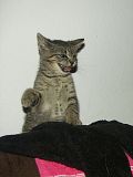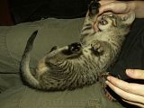Jak na kociaka jest bardzo łagodna, nie drapie a gryzie bardzo delikatnie. Od zabawy woli pieszczoty.