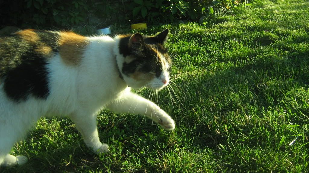 Piękny z niej kolorowy kociak i taka okrąglutka,a mój Tofik niejadek wciąż jakiś taki wciągnięty w pasie