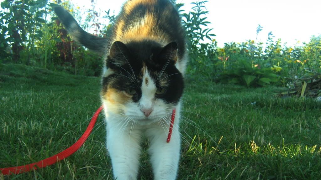 zawsze mi się wydawało, ze Kicia jest duuzą kotką ale nie az tak. dziś miałam porównanie z inną i tamta kotka wyglądała przy niej jak wychudziały karzełek, Kicia ma taką kocurkowatą głowę, taką szeroką, i wogóle ma bardzo masywną budowe