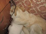 Posłanie ma u nas w pokoju, miała też pod zlewem w kuchni, póki pozwalałam jej tam wchodzić no i może spać na łóżkach, jeśli ma taką ochotę - nie ma. W tej chwili śpi na gołej podłodze, pod moimi nogami, przytulona do ściany ... ale przynajmniej w "strasznym pokoju"