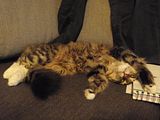 Jak pluszowy. Gdy mu wycinam futro lub obcinam pazurki, to leży do góry brzuchem i mruczy.