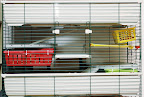 Z racji nadprogramowego, piątego ogona, który ma wkrótce dołączyć do stada, trzeba było powiększyć klatkę. Doszła nadbudówka wysokości 30cm zrobiona ze starej Wiewiórki 70 Interzoo, oraz dodtakowe wyposażenie: dwa czerwone domki z wiader na farbę, dwa hamaki w górnej części, lina wewnętrzna (gryzak) i zewnętrzna do ćwiczeń dla Andaja. Już zamówione, ale jeszcze nie dojechane: kuweta i poidła.