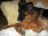 Suka była kryta wiele razy. Raz urodziła martwe szczenię, kilka razy nie zaszła w ciążę i raz urodziła jedno (zdrowe dla odmiany!) szczenię (wyrosło na cudownego z wyglądu i charakteru psa).