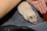 Buka jeszcze nie doszła do etapu rozciągania się wzdłuż mnie czy jakichś drzemek w dłoniach ale Figa po kilku minutach zasypia, sama wchodzi mi pod dłoń, liże mi ręce