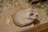 A to nasza Fochatka Wiecznie sfochowana, zgrzytająca zębami jak na Królewskie dupsko przystało. Odważna jak Hojrak tchórzliwy pies, gdy się np. kichnie to wywala się na plecy. Świetna aktorka ról typowo dramatycznych. Ciągle ostrzega, że tym razem to ona na pewno nas pogryzie- ale z powodu małego rozumku szybko o tym zapomina. Podobno miała 3-4 mc jak ją wzięliśmy miesiąc temu ale ciężko mi to określić. Jak dla mnie była za duża bo aż 184 gramy ale mogę się mylić. Na starego chomika wszak nie wygląda.