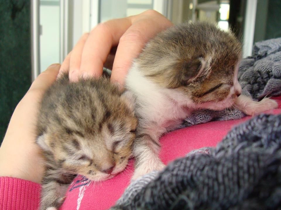 dzisiaj rano do Pulsvetu zostały przyniesione dwa maleńkie kociaki. Znalezione na przystanku autobusowym, w torebce foliowej..