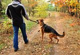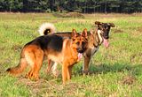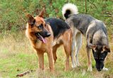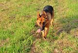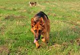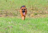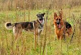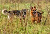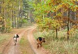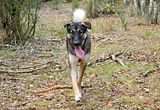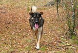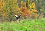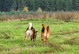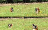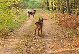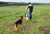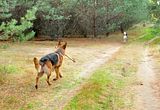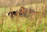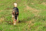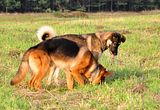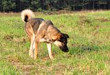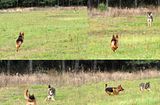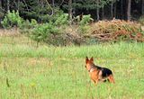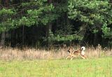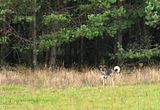 W pewnym momencie wyszliśmy na rozległą polankę. Oczywiście była tam sarna, za którą Nala z wielką radością pobiegła... i tylko widać było na linii horyzontu uciekającą w podskokach sarenkę i goniącą ją, również w podskokach, tyle że radosnych, Nalkę. Rzecz jasna sarna zwiała, a Nala po chwili wróciła, zziajana i zadowolona. Nemo też próbował za nią biec, ale wrócił na zawołanie. W takich chwilach kocham jego genetycznie wypracowane, a przez nas wzmacniane, posłuszeństwo.