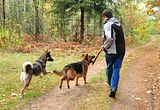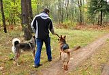 Nakasha, na spacery chodzimy razem z Radkiem, a jak czasem musze isc sama to biore całą 3 i idziemy do lasu. A żeby psiaki wybiegać to na rower jeździmy i ciągną. Ja jeżdżę z Runą, a Radek z chłopakami. Tylko jak pies ma ciagnąć rower to trzeba go nauczyć komend kierunkowych