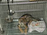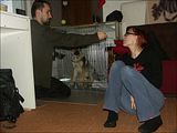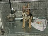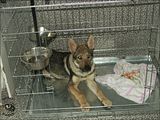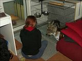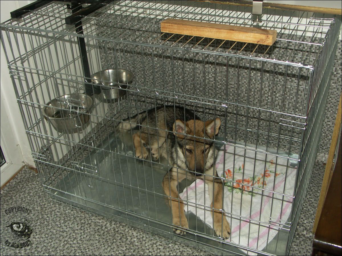 Najpierw 30 minut w zamknięciu. Potem jeszcze kilkanaście w trybie pracy: jeśli pies wychodził z klatki był totalnie ignorowany, za każde wejście do niej głośna pochwała, smakołyki i chwila zabawy.