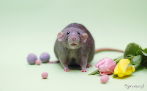 maris, Fifa ma się dobrze, jest ogromną kulą szczura, leje małą Wicię, ale naszczęście ta jest szybsza. Fifi ładnie bawi się na wybiegu, jak pół roczny szczurek, ale nie zrzuca przy tym gramów, choć by się jej przydało, futro całkiem ładnie choć trochę się przeżedziło na pleckach, skręt bardzo ładny. Chyba jest betą stadną, ale kochana jest tez strasznie, ładnie reaguje na imię, sama slodycz. Fifa nie choruje, bardzo odporna jest jak mamusia.