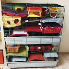 To i ja pokażę klatkę moich staruszków, bo po przeprowadzce wprowadziłam kilka zmian, m.in. usunęłam jedno piętro. Wszystkie miejsca są osiągalne i uczęszczane :) Dużo hamaków służących głównie jako półki i łapacze szczurów.